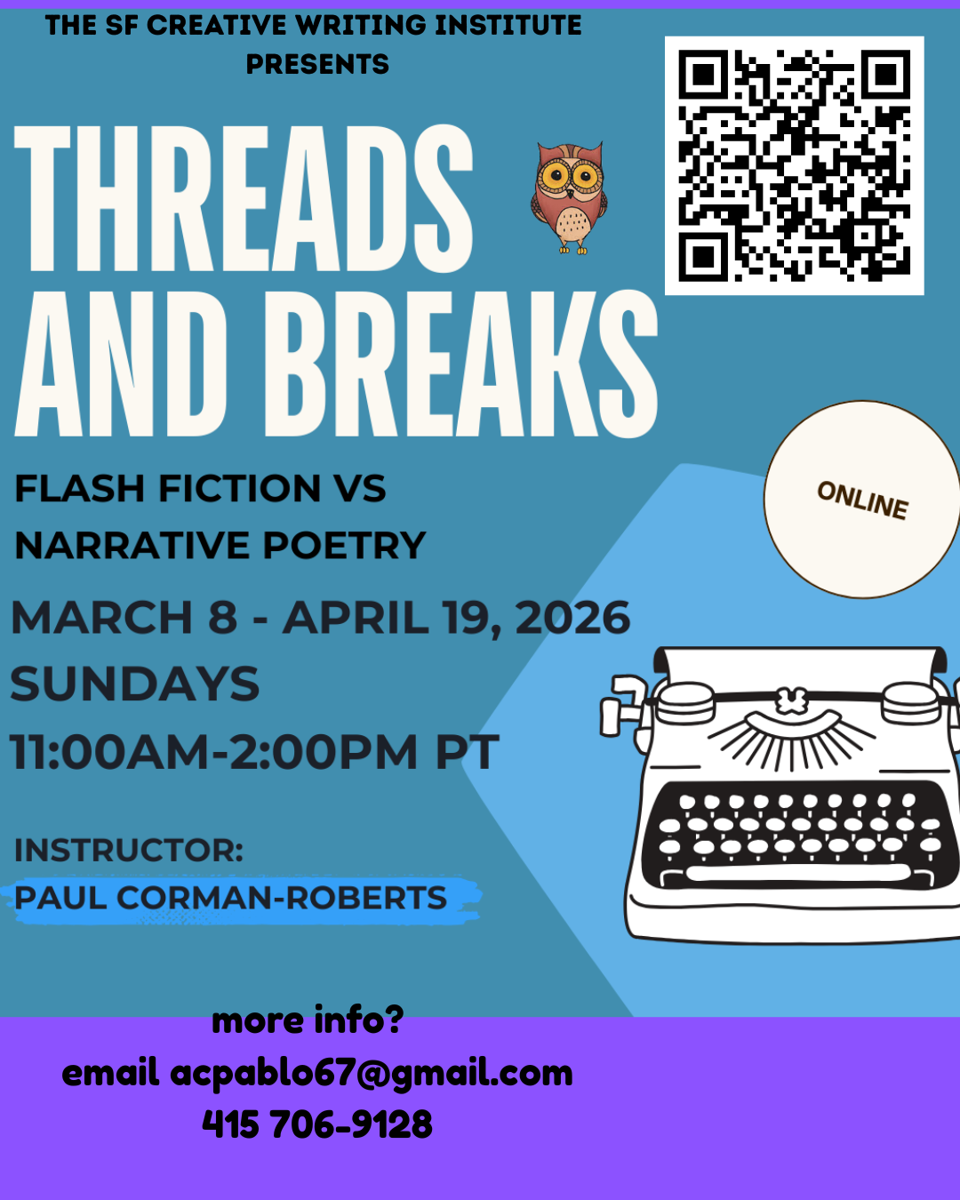 Threads and Breaks is Back!Courtesy of the SF Creative Writing InstitutePaul Corman-RobertsFeb 23, 202631ShareYou can register for this generative intensive workshop here:SF Creative Writing Institute PreviousNext